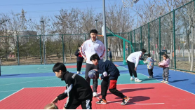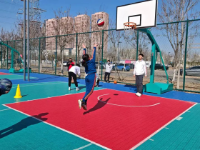 志愿者带领小朋友们做完简单的热身动作后,通过趣味性的教学模式,耐心的从基本的单、双手拍球、运行拍球和传接球等动作教起,带领小朋友们熟悉篮球、培养球感,小朋友们一起进行了篮球环绕、运球转圈以及投球等基础练习。小朋友们在志愿者循序渐进地指导下,从简单动作到复杂动作,有效地掌握了篮球运动的基本要点和技巧。
