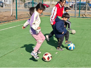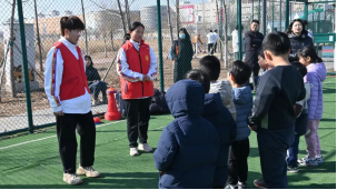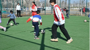志愿者首先带领大家做趣味热身活动,避免在运动中受伤,随后开展足球教学游戏,让小朋友们感受足球魅力,激发运动热情。志愿者从浅入深,逐步为小朋友们了解足球技巧进行指导,从一开始简单有趣的热身运动到练习抢球反应,再到熟悉运球技巧,志愿者都以轻松、愉快的方式耐心的传授给小朋友们。