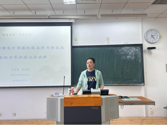 2025年4月24日下午,vwin德赢ac米兰于教学楼B216成功举办了一场主题为“解锁图书馆电子资源和服务使用新技能高效助力毕业论文全流程”的学术沙龙活动。本次活动特邀vwin德赢AC米兰合作图书馆信息部翟凤茹老师为同学们进行学术分享。